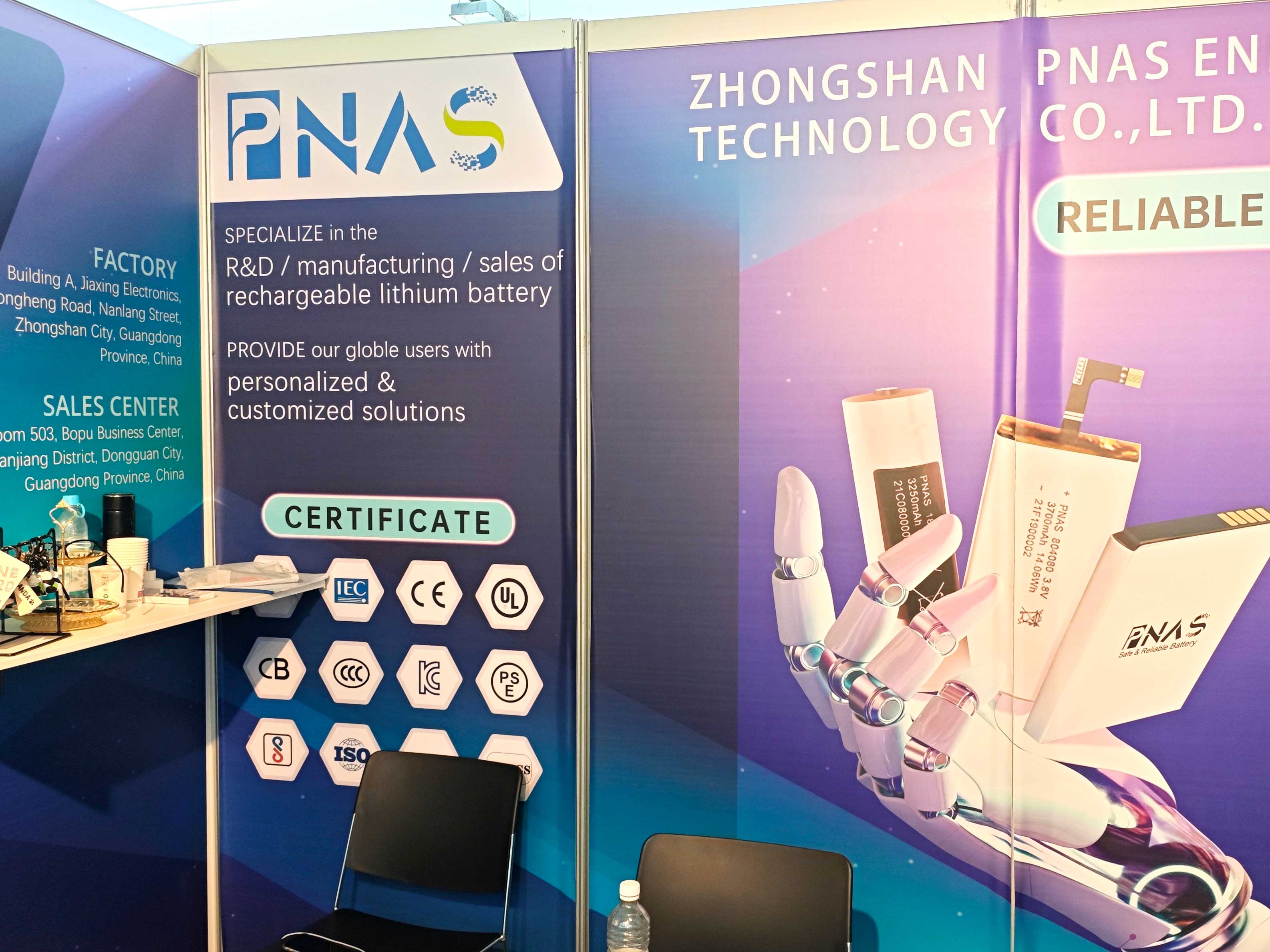 此次展會(huì)是,我們中山普納斯主要展示了有聚合物鋰電池、弧形電池、異形18650組合鋰電池、帶type-C口鋰電池以及帶外殼鋰電池等等,可適用于智能穿戴等產(chǎn)品。