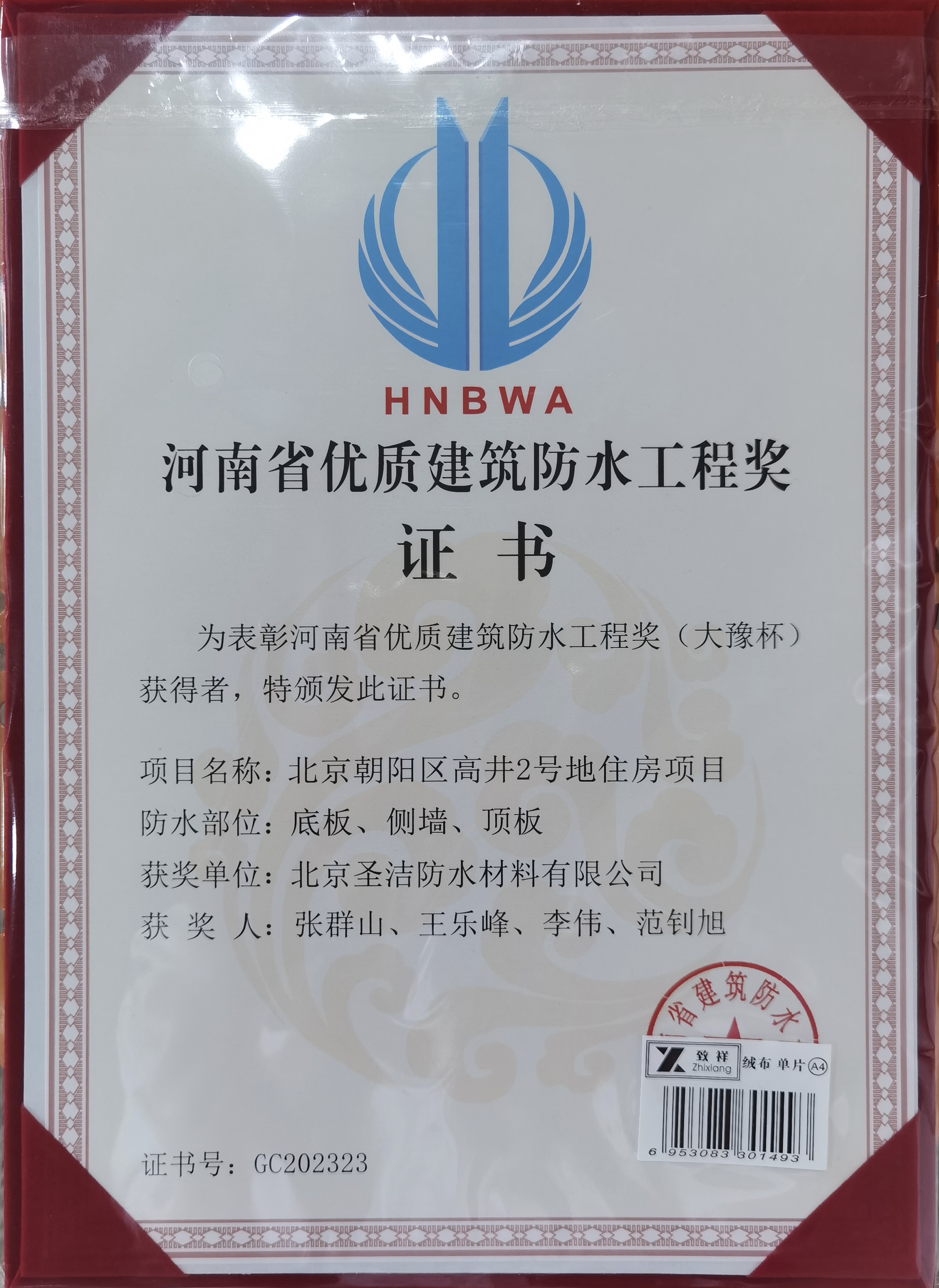 河南省優(yōu)質(zhì)建筑防水工程獎