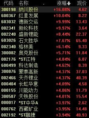 3月15日早盤,有關(guān)鋰電池板塊的股價(jià)呈現(xiàn)一片“紅?!?,包括紅星發(fā)展、德新交運(yùn)、新綸科技、盛新鋰能、天齊鋰業(yè)等均出現(xiàn)不同程度上漲。